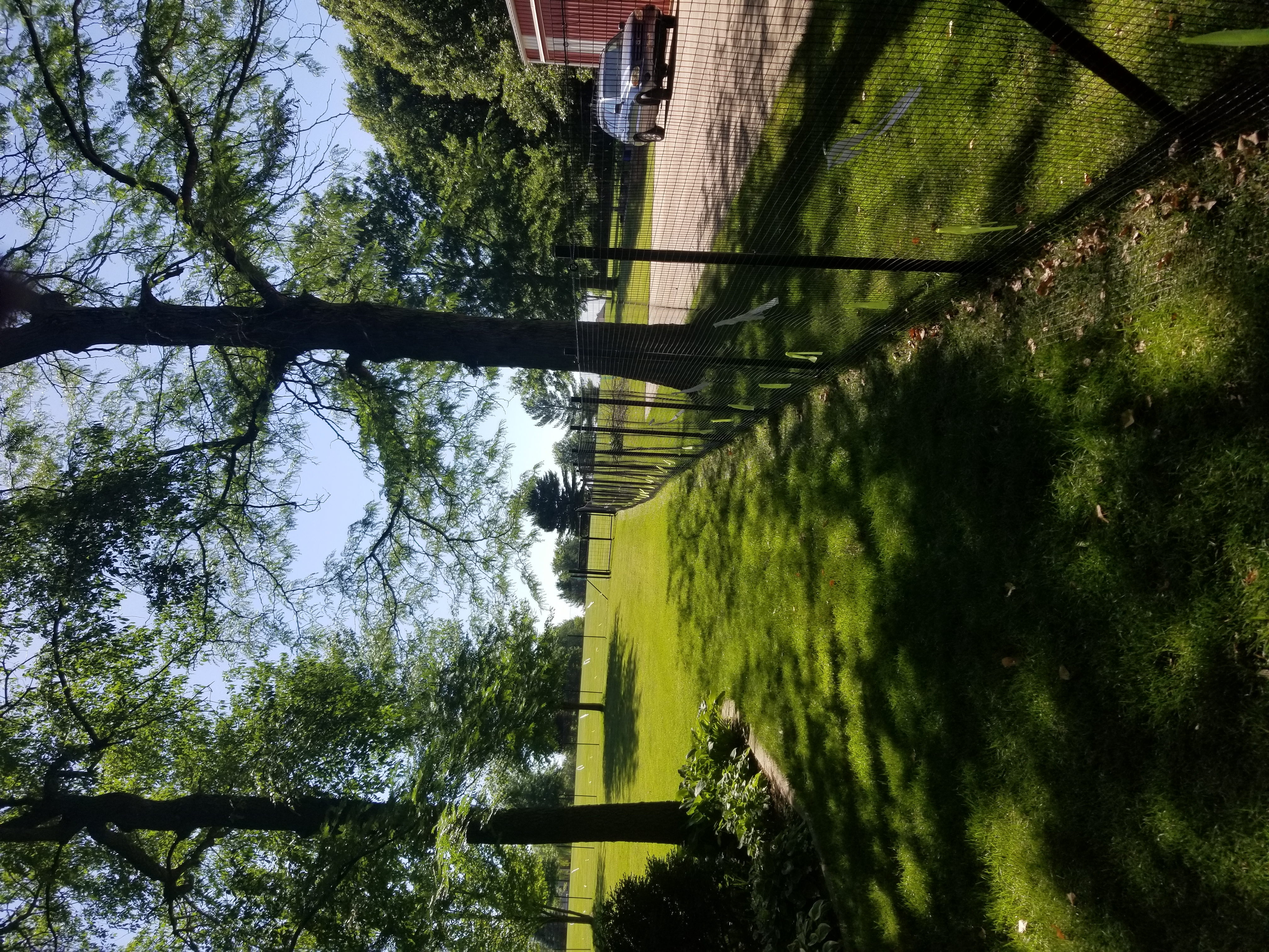 Susan F from IL used our 6x100 1x1 black grid fence along with our 6' finished height fence posts to create an area within her yard for her dalmatian dog to safely play. She included our recommended warning banners so deer wouldn't run into the fence since it's hard to see.