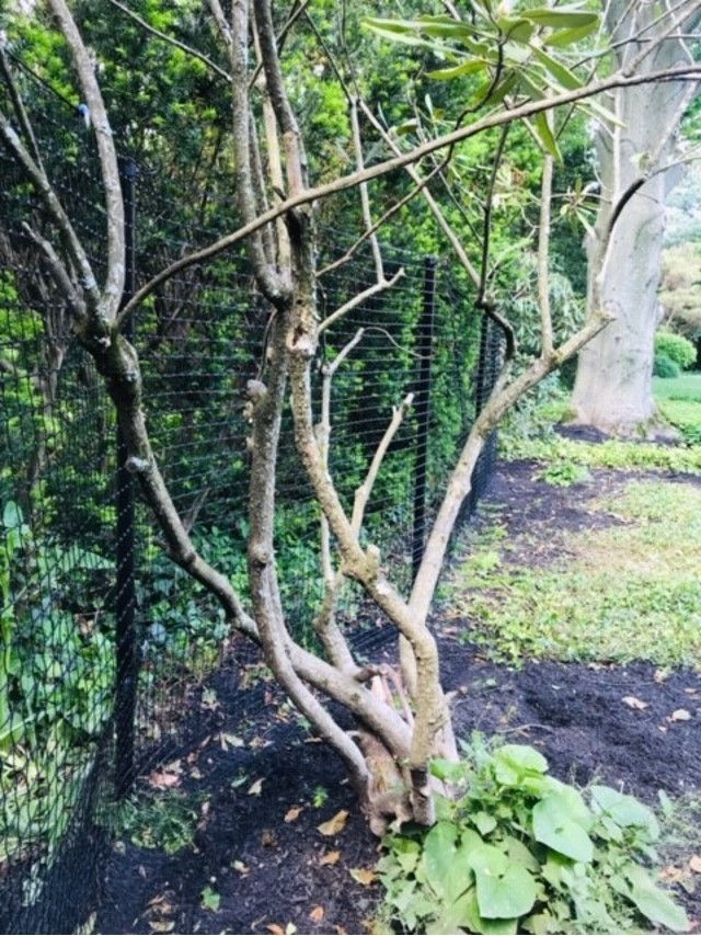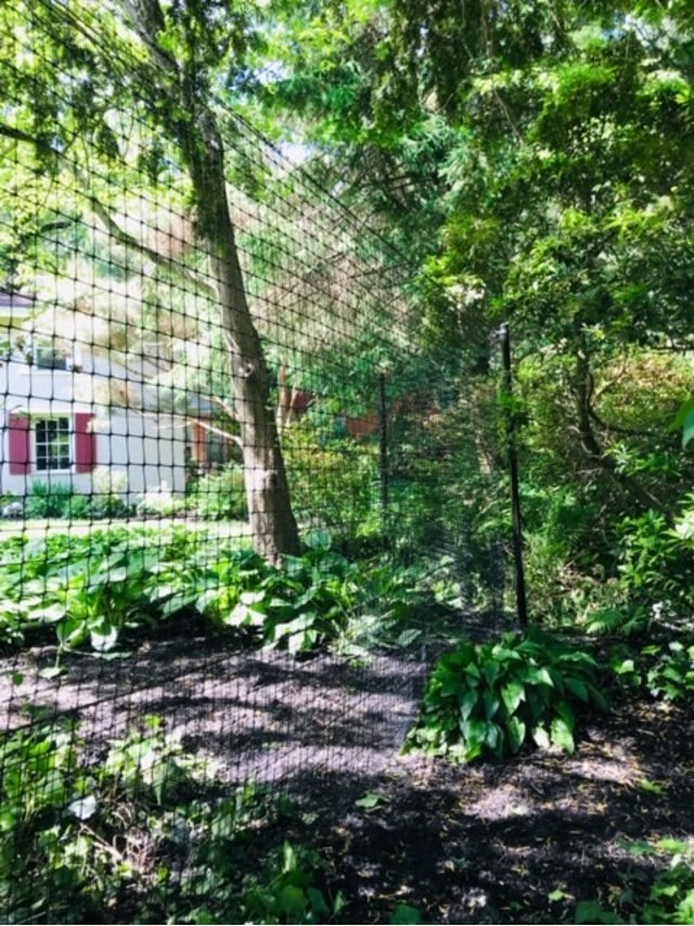 Amanda D in PA had a deer fence installed that consisted of two layers, a poly fence and a metal rodent barrier, using tension cable. Now her hostas and landscaping plants are protected.