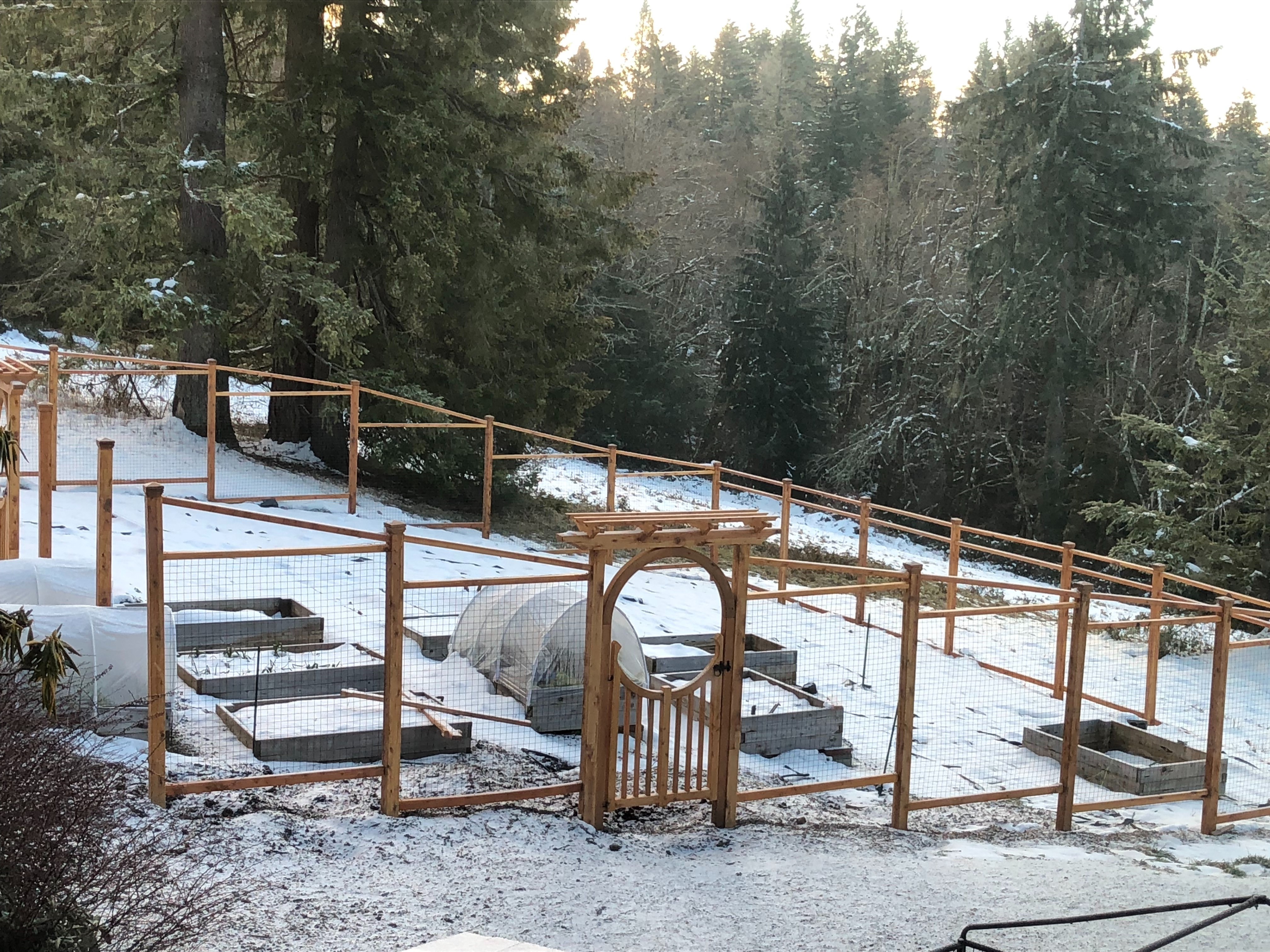 Thank you to Daniel R from Oregon for sharing photos of his project. He used Critterfence 2" Square Grid along with beautiful wood framing made from reclaimed juniper to surround his garden of raised beds.