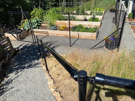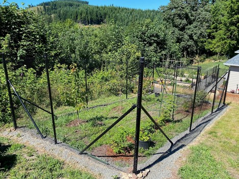 Daniel K out of Woodland, WA used Fence Kit O52 along with tension wire, corners and gates to create his beautiful garden. He even made railings!