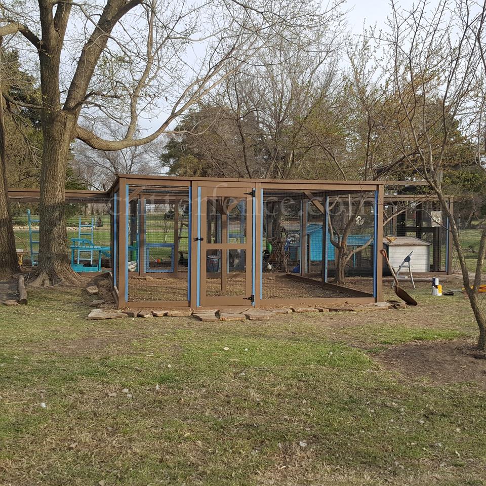 Thanks to Evan from aWardable maintenance for his photos and comments. Evan used 6 x 100' rolls of our 1" opening Critterfence steel square web around this chicken enclosure called "The Cluckingham Palace"!