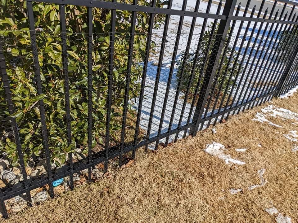 Molly from Rock Hill, SC used our 3x150 hex web fence https://www.critterfence.com/black-steel-web-hexagrid-3-x-150 attached with nylon ties https://www.critterfence.com/self-locking-120lb-breaking-strength-14-fence-ties-100pkto protect her small dog from escaping her backyard aluminum fence. Marley got to play outside during a rare snow day and Molly is happy that her kids and dog can play safely outside together.