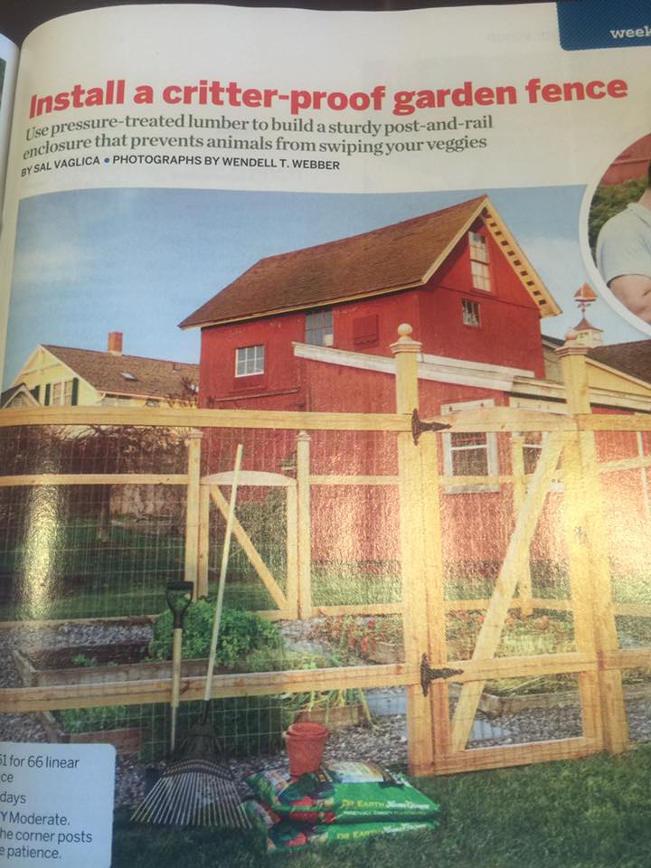 Thanks to This Old House for using our Critterfence bottom wire fencing in their garden enclosure. April 2016 issue of their magazine.